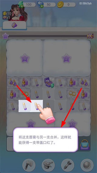 3、在合成的過程,可將唇膏與另一支合并,獲得帶蓋口紅,通過合并物品提升合成等級。