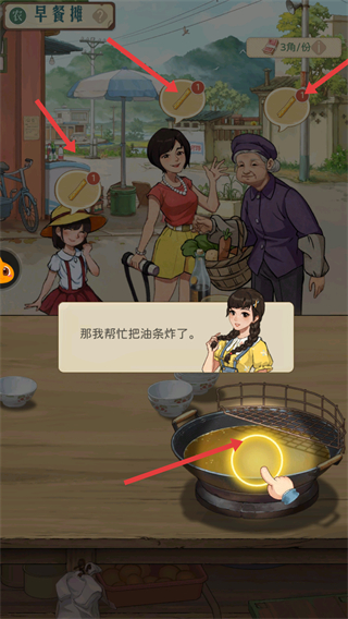 3、營業的過程,要處理顧客的需求,比如制作油條,同時關注多個顧客的訂單,及時完成,提升顧客滿意度。