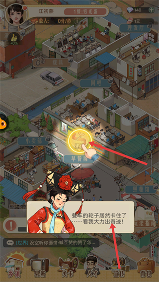 1、在小鎮場景里,可經營早餐攤等店鋪,點擊店鋪進行相關操作,還會觸發劇情,推進小鎮經營的故事線。