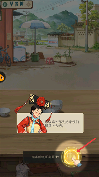 2、經營早餐攤時,點擊準備就緒,即刻開業,就能開啟營業,接待顧客,開始獲取經營收益。