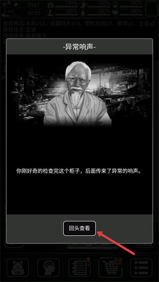 3、檢查完柜子后傳來異常響聲,點擊回頭查看按鈕,觸發后續劇情,探索異常響聲的來源。