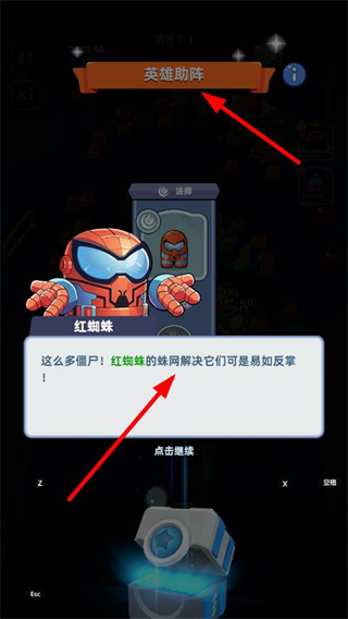 1、英雄助陣,如紅蜘蛛加入戰斗,利用其蛛網技能解決僵尸,增強防守戰力,共同守護城市。