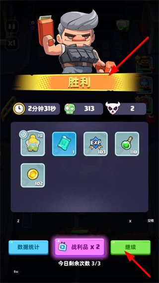 4、成功防守關卡后獲得勝利,領取獎勵如金幣、經驗等,點擊繼續開啟下一場防守戰斗。