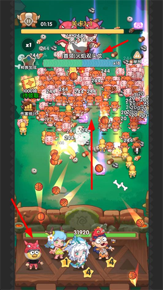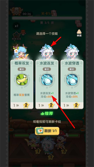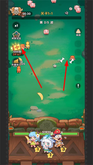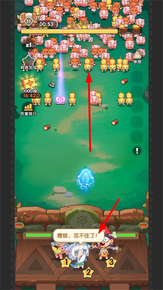 1、利用技能和陣容攻擊怪物,收集戰斗資源,推進關卡波次,為后續技能選擇和戰力提升做好準備。