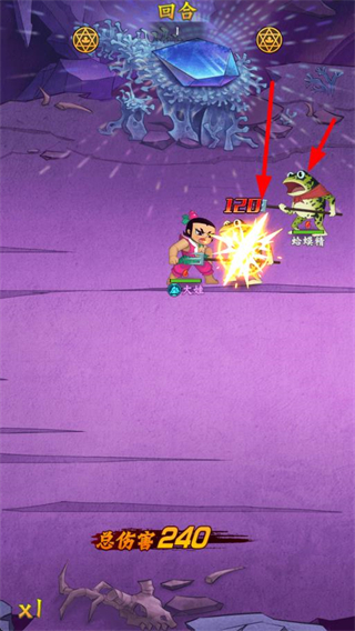 4、在多回合戰斗,面對多個妖怪如妙蛙精、蜈蚣精,操控葫蘆娃依次攻擊,積累總傷害,最終擊敗所有敵人。