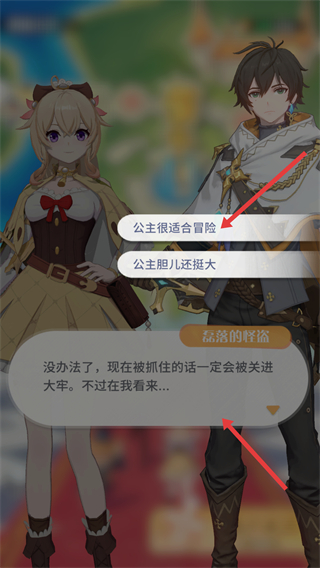 2、有劇情對話,可選擇公主很適合冒險等選項,推進劇情發展,了解游戲背景故事。
