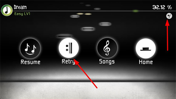 4、若演奏失誤,點擊Retry重新開始,調整演奏節奏和技巧,爭取在下次演奏時獲取更高的評分和完成度。
