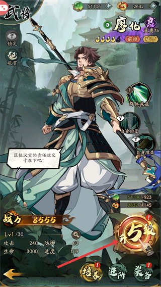 3、武將升級后可進行進階,進階后戰力提升,還能解鎖新技能,進一步強化武將,提升戰斗能力。