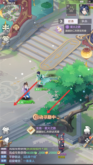 1、在云夢長安場景里,可進行自動尋路,跟隨主線星火之路任務,前往指定地點,推進劇情發展。