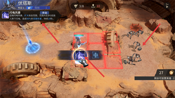 1、可使用伏塔斯等英雄,其技能如閃電風暴可擴大攻擊范圍,攻擊多名敵人,布置后助力防御敵人進攻。