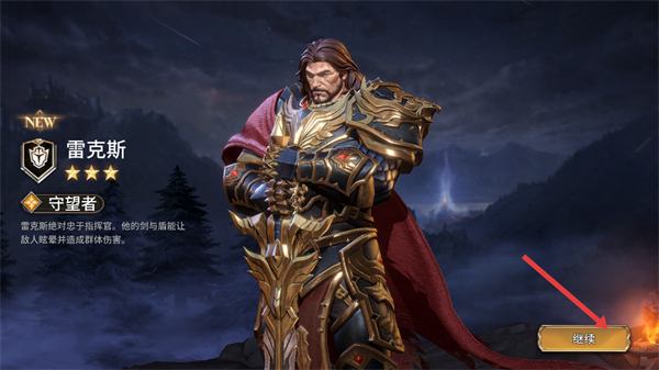 3、可解鎖新英雄雷克斯,了解其屬性后點擊繼續,可將其加入防御陣容,增強防御實力。