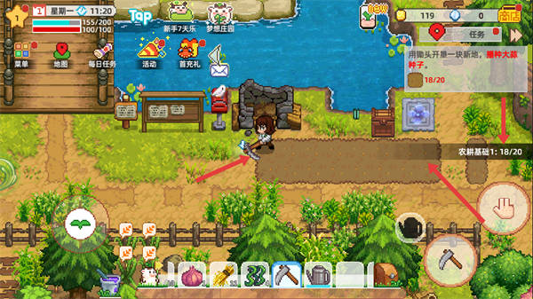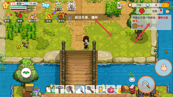 1、可前往開墾土地,用鋤頭開墾新地塊,然后播種大蒜種子,開展農耕相關操作,體驗種植樂趣。