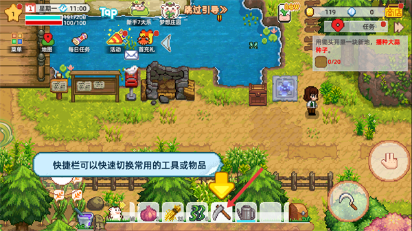 3、快捷欄能快速切換常用工具或物品,方便在農耕等操作時,迅速選取所需工具,提升操作效率。
