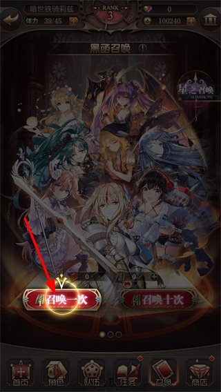 4、可參與黑暗召喚,點擊召喚一次按鈕進行召喚,有機會獲得新角色,擴充隊伍陣容。