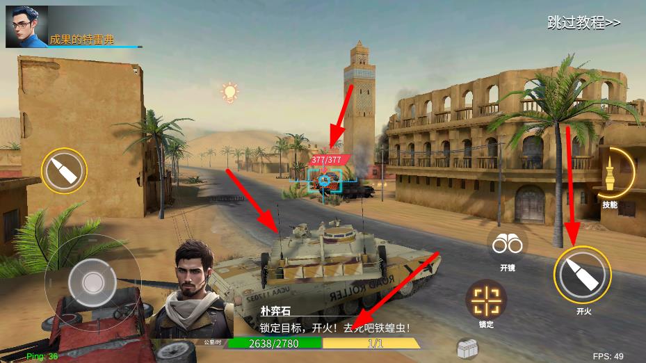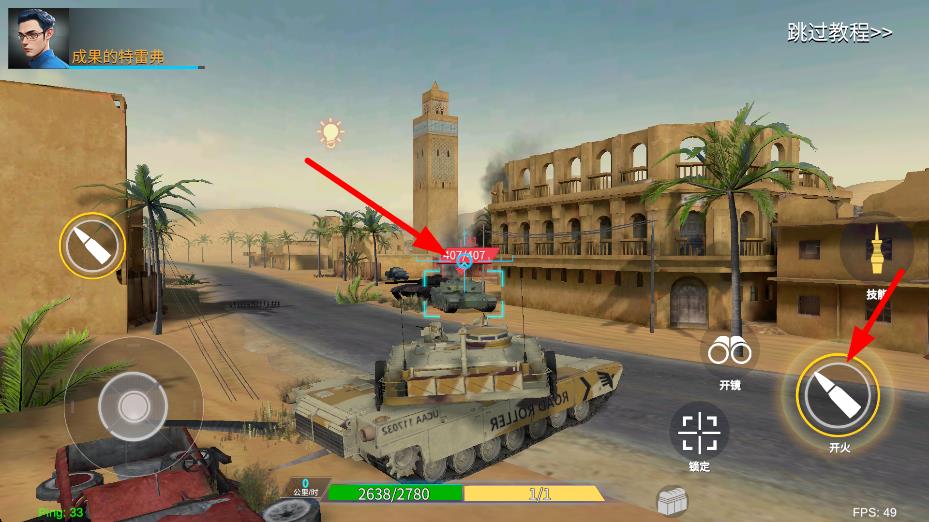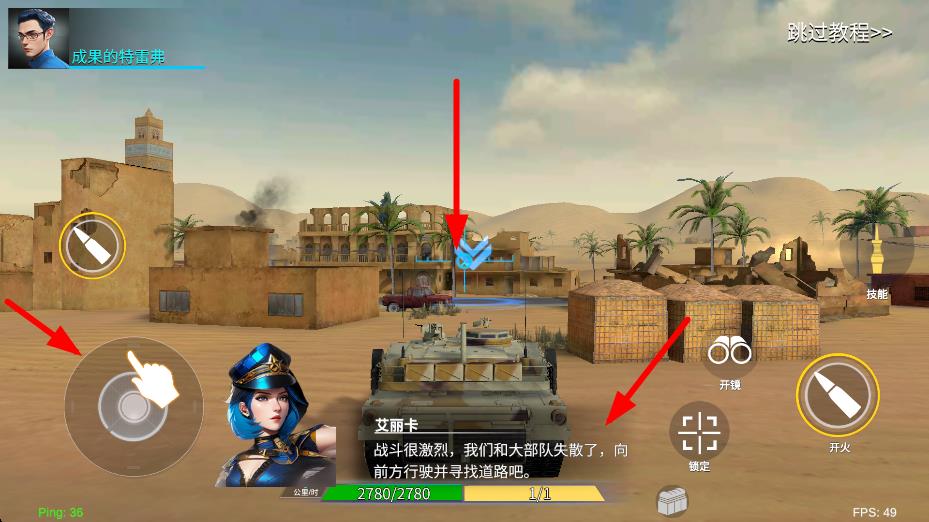 2、拖動移動按鈕,駕駛坦克向前行駛,尋找道路和敵方目標,為坦克戰斗做好準備,推進任務進程。