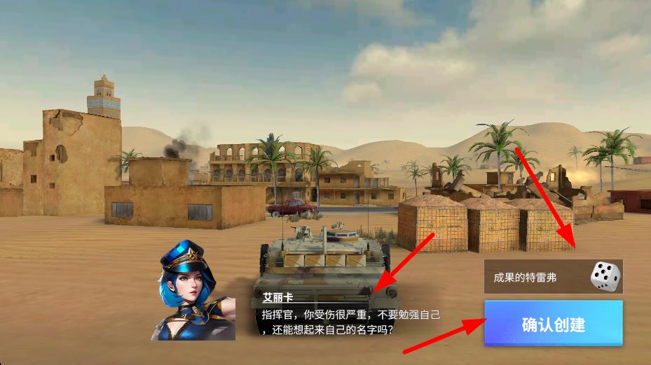 1、創建角色成果的特雷弗,確認創建后進入沙漠戰場,開啟坦克突襲之旅,駕駛坦克參與戰斗。
