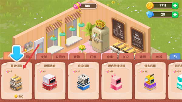 3、可以選擇不同類型的烤箱,如基礎烤箱、粉粉烤箱等,花費金幣購買烤箱,拓展蛋糕制作規模。