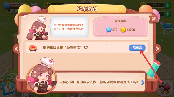 4、完成任務如提供生日蛋糕心想事成3次,可獲得獎勵,點擊現在去按鈕完成任務,助力店鋪成長。