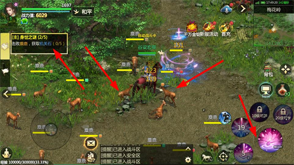 3、推進身世之謎主線任務,擊敗麋鹿獲取機關石,開啟自動戰斗,輕松完成任務,積累資源。