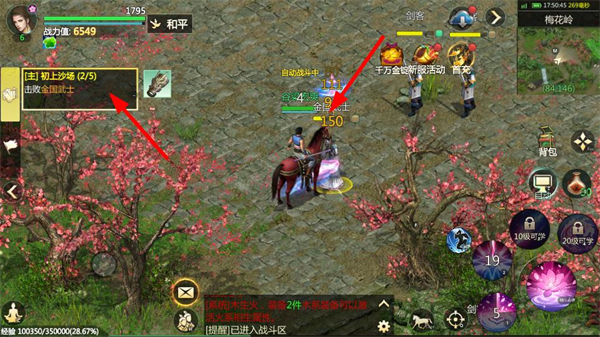 4、參與初上沙場主線任務,擊敗金國武士,提升等級和戰力,深入江湖,體驗武俠世界的恩怨情仇。
