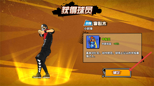 4、可獲得球員,了解球員技能,如中投王等,點擊確定獲取該球員,不斷擴充球隊陣容,增強球隊實力。