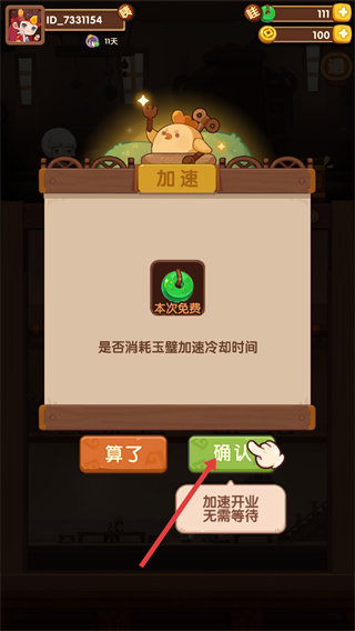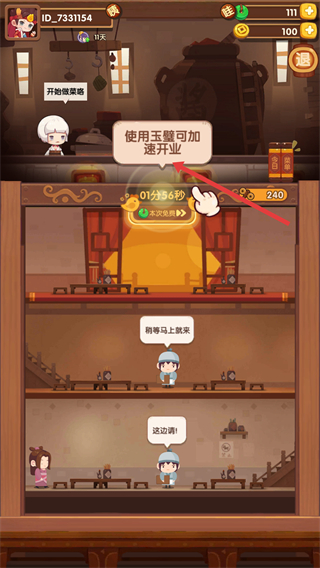 2、營業過程,可使用玉璧加速開業,點擊使用玉璧的提示區域,能減少開業等待時間,快速推進營業進程。