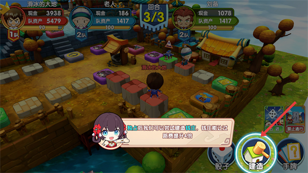 4、遇到他人地產可嘗試建造圍欄,圍欄能讓路過路費提升4倍,增加游戲收益。