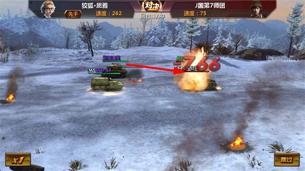 2、在對戰場景里,操控己方坦克攻擊敵方目標,造成傷害并推進回合進程,爭取對戰勝利。