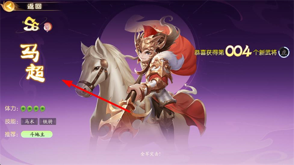 2、獲得新武將馬超,了解其體力、技能和推薦玩法,將其納入武將陣容,優化隊伍配置,提升對戰能力,豐富游戲體驗。