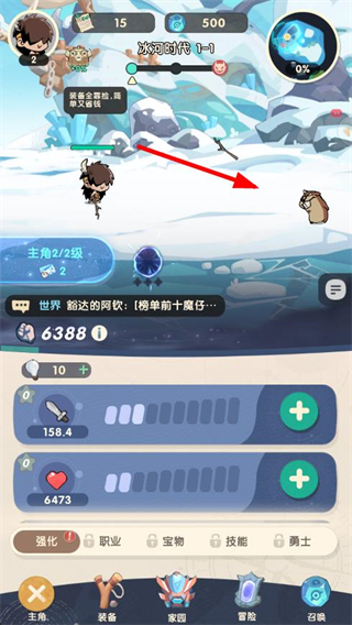 3、操控角色移動攻擊怪物,在冰封時代等場景里擊敗敵人,推進冒險關卡進程,解鎖新區域。