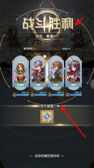 4、戰斗勝利后可獲得經驗、關卡掉落等獎勵,提升賬號等級,解鎖新角色或內容,繼續游戲冒險。