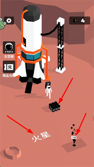 4、切換到不同星球場景如火星,繼續收集資源,積累更多道具,推進太空探索與資源收集的進程。