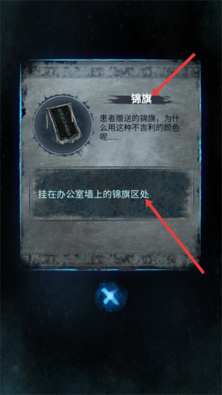 4、獲得錦旗道具后,提示掛在辦公室墻上的錦旗區處,按照指引前往該區域,利用錦旗推進解謎流程。