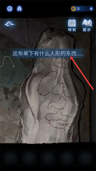 1、會遇到布單下有人形東西的場景,通過觀察布單上的圖案等細節,尋找解謎線索,推進劇情發展。