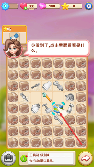 3、合并物品后可查看獲得的新物品,如工具箱,收集這些新物品,為后續的家居裝修做準備。