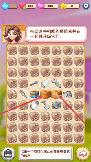 2、需拖動相同的項目合并并升級它們,通過合并升級物品,獲取更高級的道具,助力家居布置。