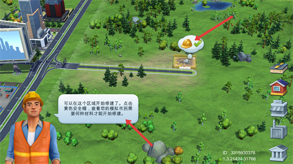 2、選擇要修建的區域,點擊安全帽圖標,查看修建該區域需要的模擬市民和材料,準備開始修建。