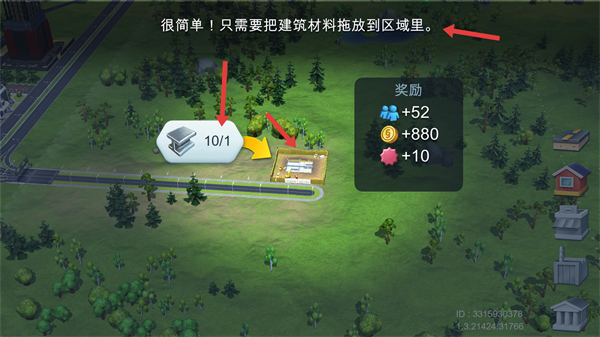 3、修建時把建筑材料拖放到區域里,滿足材料需求后,完成修建,獲取獎勵,推動城市建設進程。