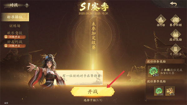 4、在賽季界面點擊開戰按鈕,進入對戰模式,與新對手展開卡牌對決,獲取賽季獎勵。
