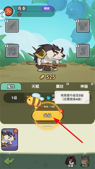 4、對英雄周泰進行升級操作,升級需滿足經驗要求,升級后英雄等級提升,增強英雄戰力。