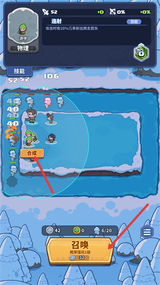 4、可對英雄進行合成,提升其等級和屬性,如連射型英雄攻擊時有幾率讓敵人消失,助力戰斗勝利。
