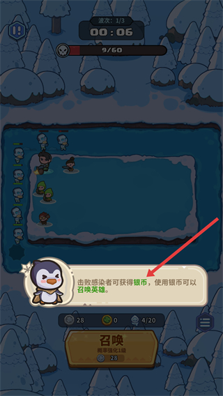 3、擊敗感染者可獲得銀幣,使用銀幣召喚英雄,增強隊伍戰力,更好地抵御感染者的攻擊。
