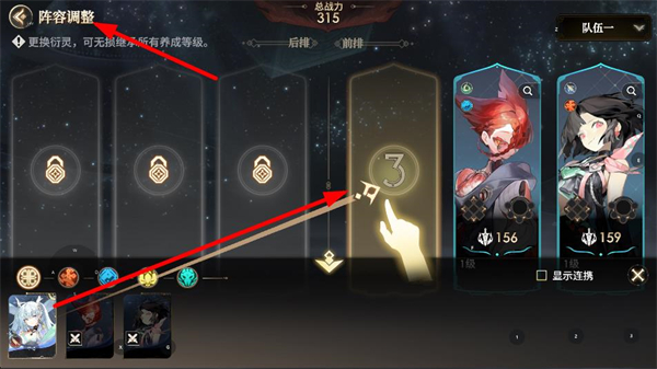 4、進入陣容調整界面,更換衍靈,調整前后排站位,優化陣容搭配,讓符靈在戰斗時發揮最大戰力。