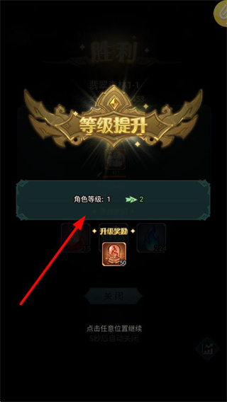 4、戰斗勝利后角色等級提升,從1級升至2級,還可獲得升級獎勵,提升角色屬性,解鎖更多游戲內容。