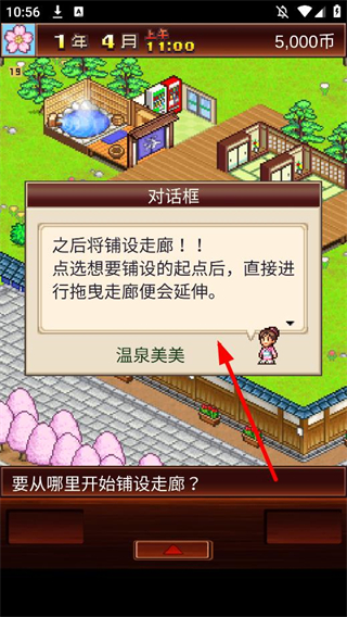 4、選擇好走廊的鋪設終點,確認消耗對應的貨幣后完成鋪設,逐步完善旅館的設施布局,提升旅館的運營基礎條件。