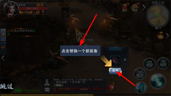 3、可替換新裝備,如神明戒指,點擊裝備按鈕即可更換,更換裝備后提升戰力,助力戰斗和任務完成。