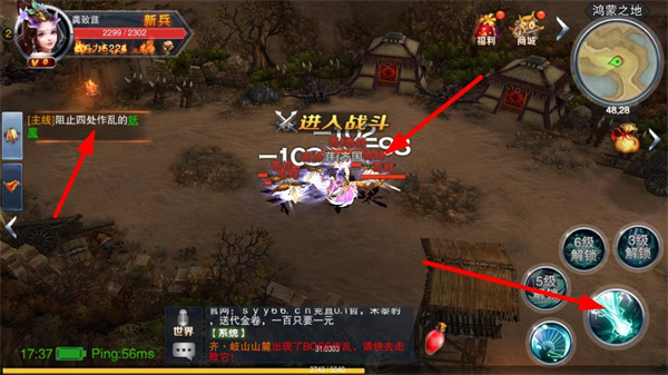 4、在鴻蒙之地,跟隨主線任務阻止四處作亂的妖魔,使用技能攻擊敵人,擊敗妖魔完成任務。