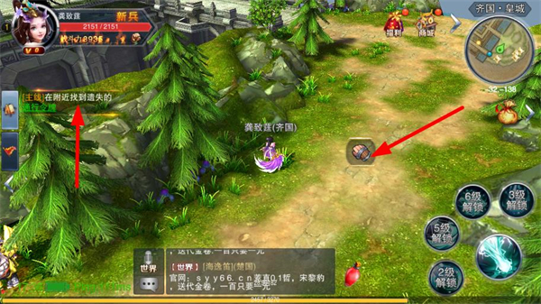 1、在齊國皇城場景,跟隨主線任務在附近找到遺失的通行令牌,完成任務推進游戲進程,提升戰力。