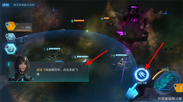 1、超級飛彈裝載完畢后點擊發射,對敵方艦隊造成大量傷害,消滅敵方目標,獲取太空戰斗優勢。