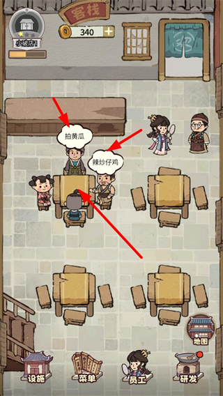 2、客棧內客人會點選拍黃瓜辣炒仔雞等菜品,需根據客人需求提供對應的餐食,推進客棧的經營流程。